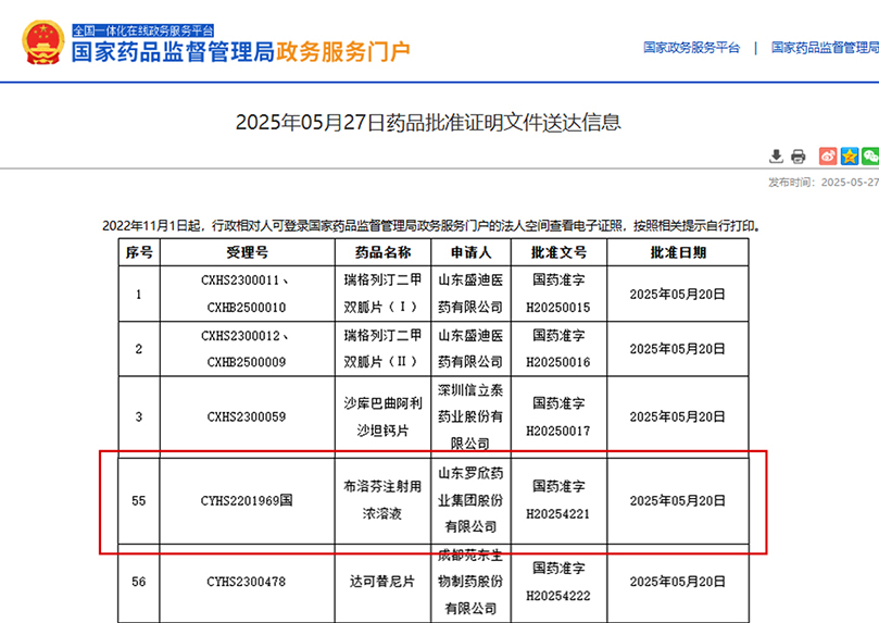 立博首页药业布洛芬注射用浓溶液获得药品注册证书