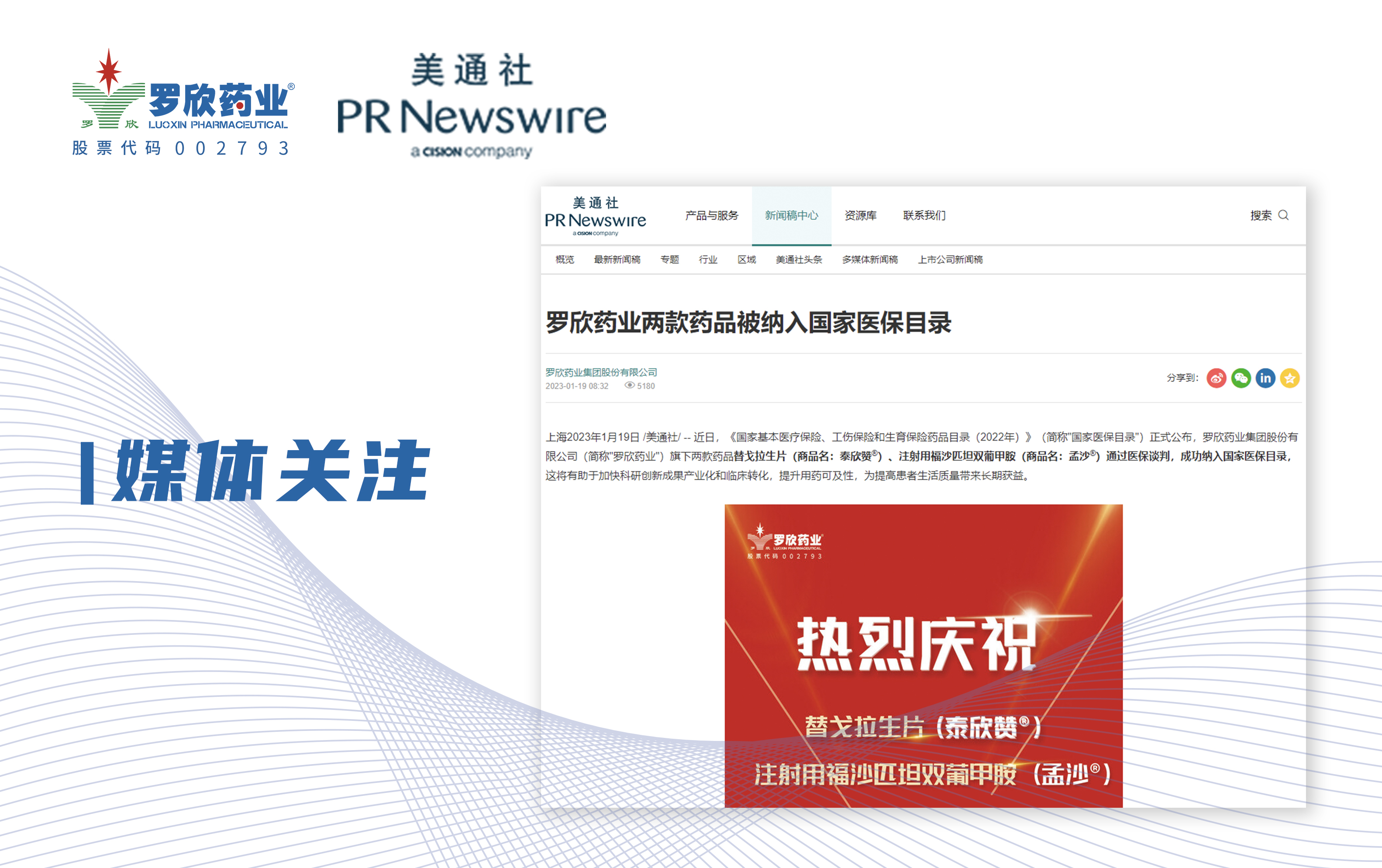 美通社报道 | 立博首页药业两款药品被纳入国家医保目录