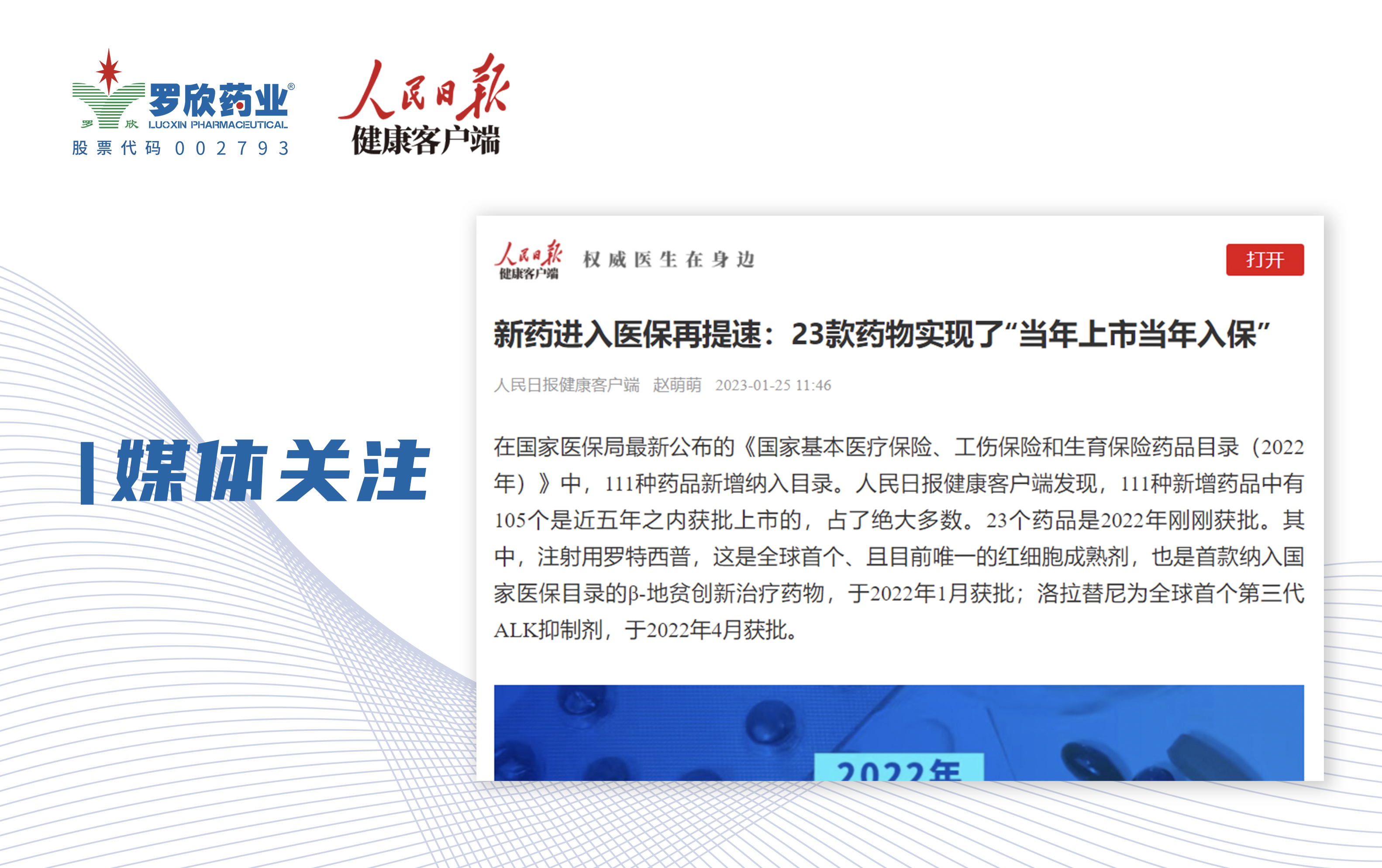 人民日报健康客户端报道 | 2022年获批的10款新药进入国家医保目录
