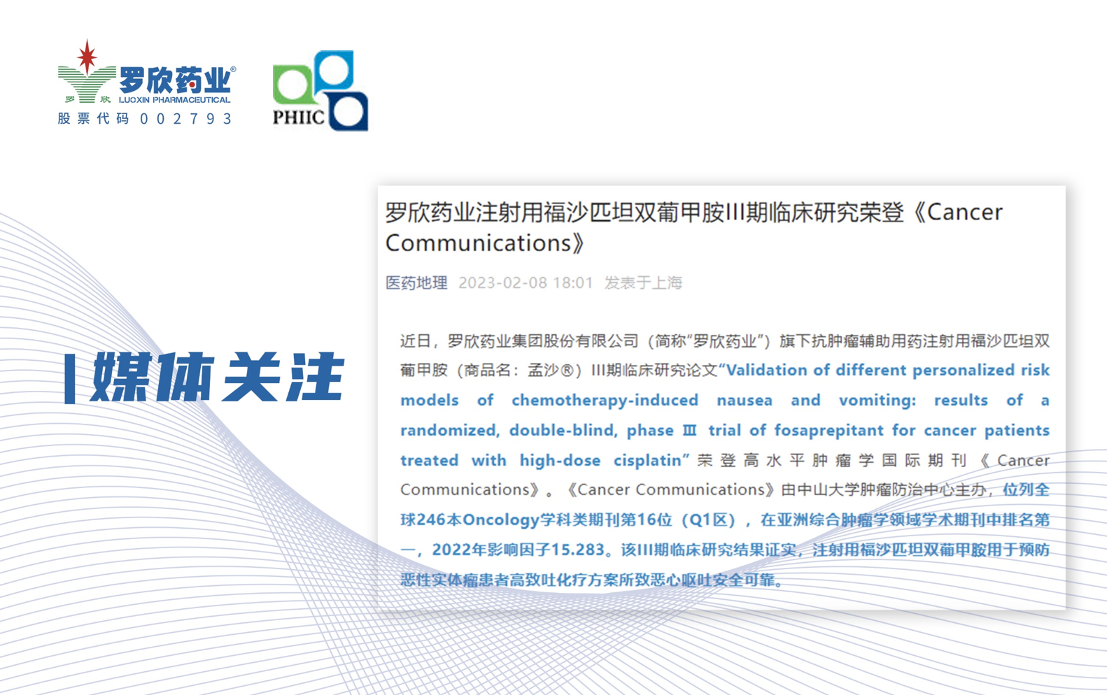 医药地理报道 | 立博首页药业注射用福沙匹坦双葡甲胺III期临床研究荣登《Cancer Communications》