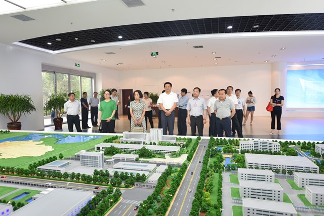 图为省政协常委、人口资源环境委员会主任、副秘书长张有兴(前排右三)参观我公司展厅时的情景
