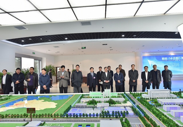 3月28日,青海省海北藏族自治州州委常委、副州长、山东省政府副秘书长耿涛,海北州委常委、海晏县委书记董玉毅带领海晏县党政考察团莅临我公司参观考察。临沂市副市长、兰陵县委书记郑连胜,罗庄区区委副书记、区长刘凯,区委常委、区委办公室主任、区总工会主席彭有聚,区政府副区长、罗庄街道党工委书记庄少春,区领导李先开、刘克区、刘夫庆、王铁骊、苗士青、李向前以及股份集团公司副总经理韩风生等陪同参观。