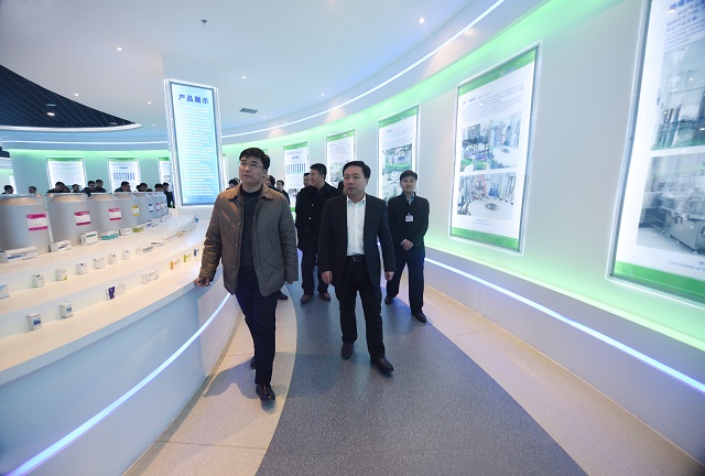 上图为全市基层党建观摩会与会人员一行参观公司展厅的情景