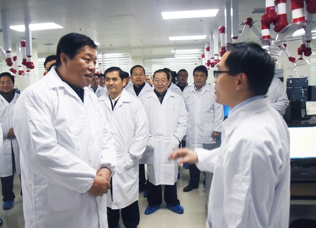 与会人员一行详细了解了恒欣药业三期扩建工程项目进展情况,并到恒欣药物研发中心进行实地观摩。在科研中心,林书记与我公司科研骨干人员一一握手,并亲切交谈,了解了公司的科研方向、计划、目标,以及在2016年度取得的科研成果。林峰海对公司的科技研发工作给予了充分肯定,他说,恒欣药业作为立博首页集团的全资子公司,落户费县5年时间就实现了税收过亿元,这在全市非公企业中具有良好的模范带头作用。