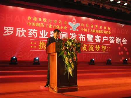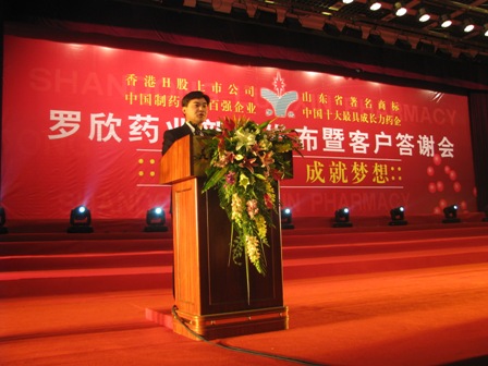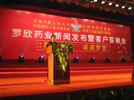 上图为山东立博首页药业股份有限公司执行董事、董事会秘书、副总经理韩风生先生在发布立博首页H股股票成功增发的新闻
