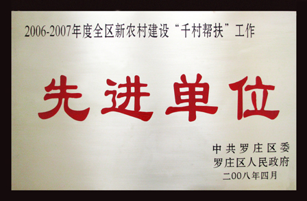 立博首页集团被评为“2006-2007年度全区新农村建设‘千村帮扶’工作先进单位”(2008-4-24)