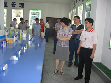 2008年7月17日,山东立博首页药业股份有限公司2008年第一次股东特别大会在三楼会议室隆重召开。参会股东、董事、监事在公司领导的陪同下参观了展厅以及三期产能扩建工程等,对公司发展情况进行了全面了解。下图为公司股东、董事、监事在公司执行董事韩风生先生(右一)陪同下参观公司展厅。