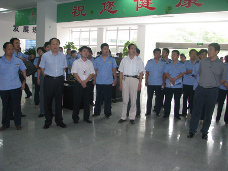 2008年8月 15日,市工商系统一行60余人在市工商局局长姚明带领下莅临我公司检查指导工作,对我公司整体发展情况做了全面了解,并对公司的快速、健康发展给予了充分肯定。下图为临沂市工商局局长姚明(前排左二)带队参观公司展厅。罗庄区人大副主任江伟(前排右一)、罗庄区政协顾问苗会田(前排左五)等陪同。