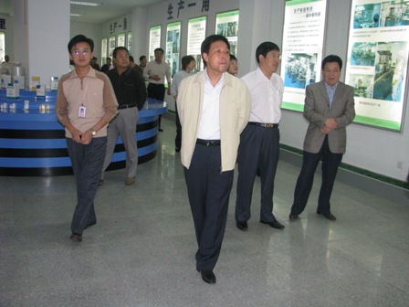 2008年9月25日,罗庄区委常委、副区长魏九成(前排左二),区委常委、政法委书记魏泽来(前排右一),副区长吴汉林(前排右二)及区直属部门领导一行50余人莅临我公司检查指导工作,对公司厂区建设、发展规划等做了详细了解。
