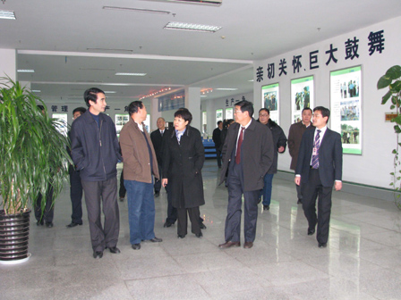 2008年12月4日,临沂市人大常委会党组书记、第一副主任朱绍阳(前排右二)、带领驻临沂市的全国人大代表和驻市直的部分省、市人大代表一行30余人莅临我公司指导工作,罗庄区委副书记、代区长刘淑秀(前排右三)、罗庄区人大常委会主任山长青(前排左一)等领导陪同,观看了公司介绍剪辑片并参观了公司展厅,对公司的发展运营情况做了详细了解。