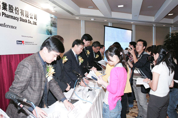 立博首页药业上市新闻发布会现场