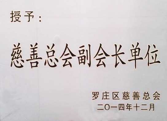 公司荣获“慈善总会副会长单位”荣誉称号(2015-2-7)