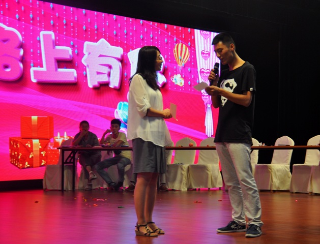 相亲大会在热情洋溢的自我介绍中拉开序幕,通过“大声说出爱”、“脑力大考验”、“浪漫情歌对唱”、“梦中情人”等趣味游戏环节,使现场气氛更加活跃,激发了单身青年参加的积极性。“电影经典镜头再现”环节则将整个活动推向了高潮,其中第一组青年在表演电影《河东狮吼》片段时,把女主人公凶悍、爽快、霸道的性格特点恰到好处地展现了出来,引来现场阵阵掌声与喝彩声。